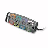 SmartSockets combines features and visual excitement to provide superior surge protection to your electronics against power spikes, brown outs, and black outs. Color-coded rings with matching color labels for easy connected equipment identification and cord management. 8-outlet, 6-ft cord, with 1890 joule rating. Right-angled plug for easy accessibility. $25,000 limited connected equipment warranty.