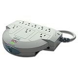 Keep your home office equipment safe from unpredictable power surges with this 8-Outlet Surge Protector from APC. The eight outlets protect your PC as well as peripherals and your phone/fax/modem line with the single telephone line from the damaging affects of lightnening strikes and power surges with a 240 joule surge rating. The 6 foot cord allows for easy reach to the nearest wall outlet and the right angle plug keeps the cord flush against the wall and out of the way.
