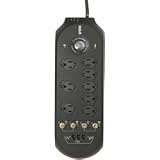 RCA PS83202C2 8-Outlet Surge With Phone & Coaxial Protection8 outlets ; Coaxial (2 lines), ;DBS & phone protection ;with splitter ; 2100 Joules; 3 transformer-spaced outlets; Rotating safety covers ; Surge Stat indicator ; Noise filter ; Power switch with circuit breaker ; Includes 3-ft RG6 cable ;& 6-ft telephone cord ; 6-ft cord with 45 flat-profile plug; $100,000 connected ;equipment guarantee 8-Outlet Surge With Phone & Coaxial Protection